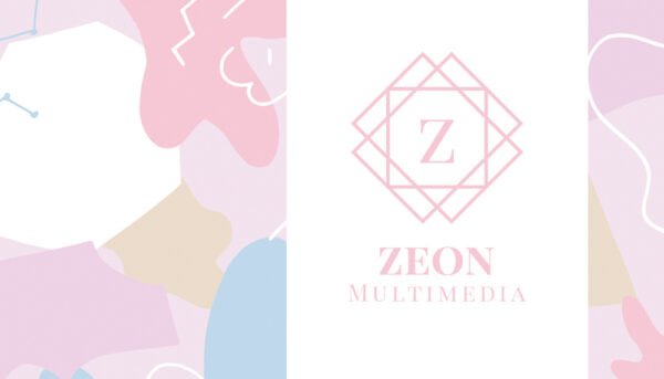 A bold and modern abstract business card design with artistic shapes and vibrant colors.