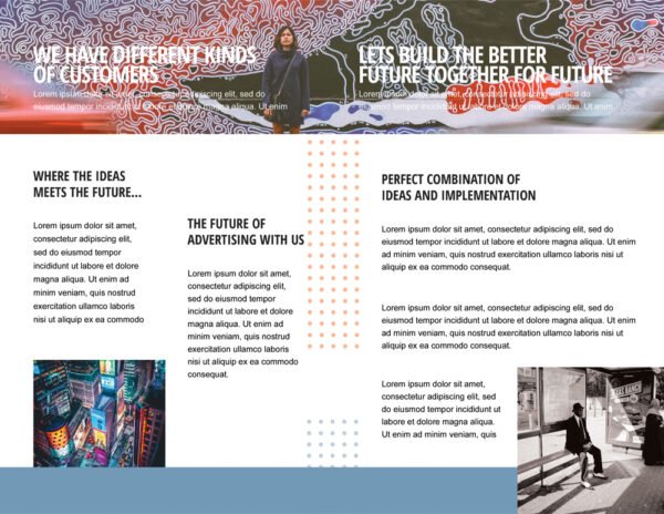 A dynamic and eye-catching advertising brochure template with bold visuals and clear messaging. Ideal for promoting products, services, or campaigns with customizable sections and vibrant design.