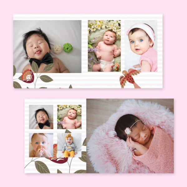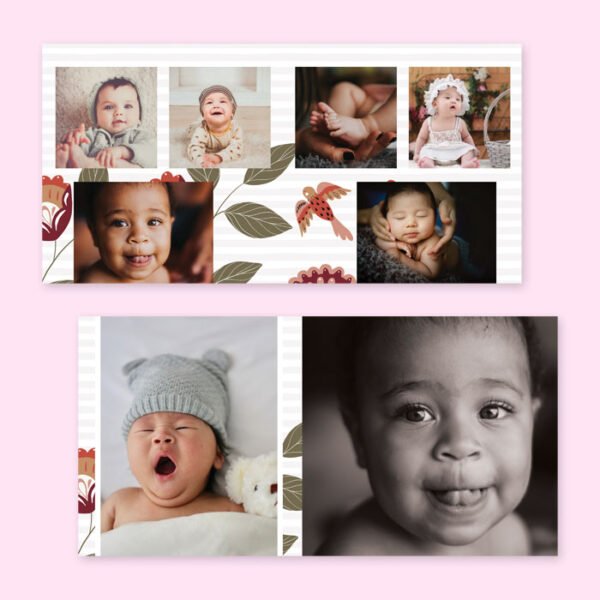 A charming 10×10 Baby Album Template featuring cute layouts and gentle colors to showcase your baby’s first moments and milestones. Perfect for creating a treasured keepsake full of love and memories.
