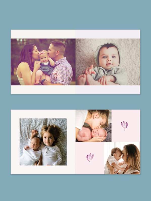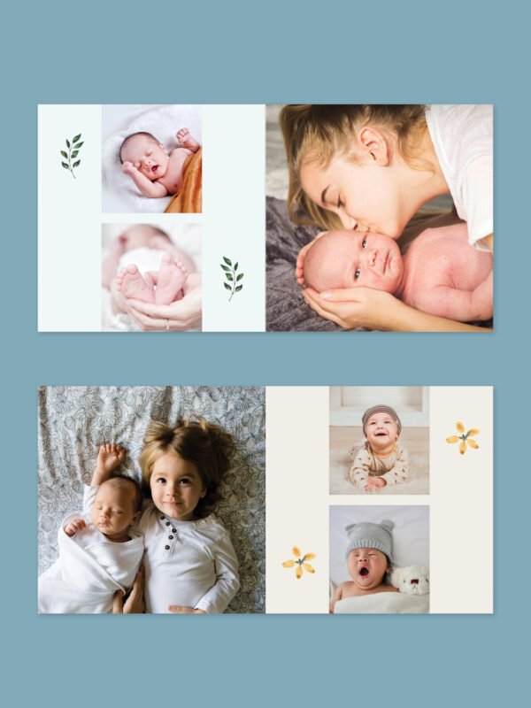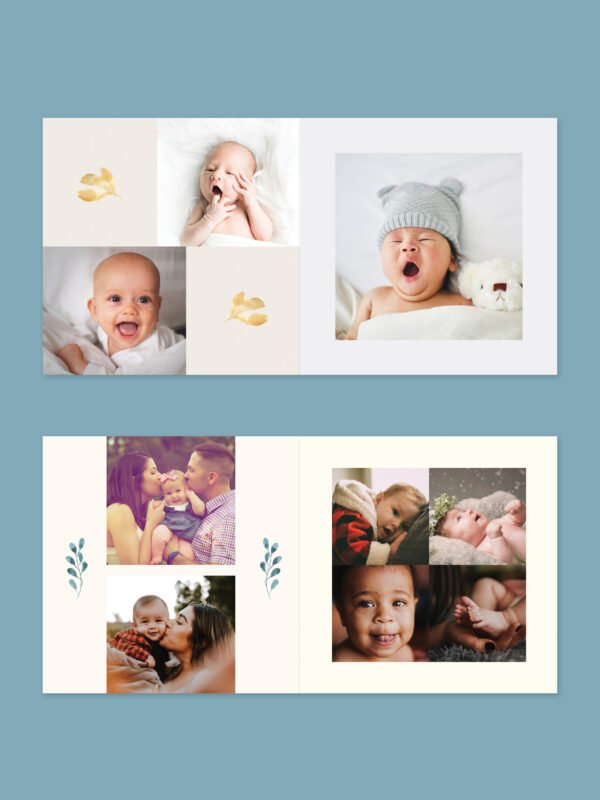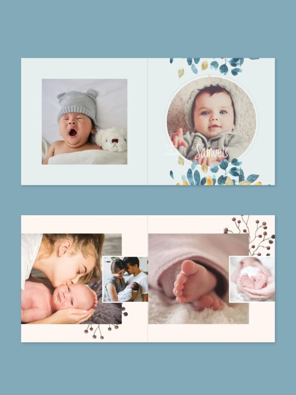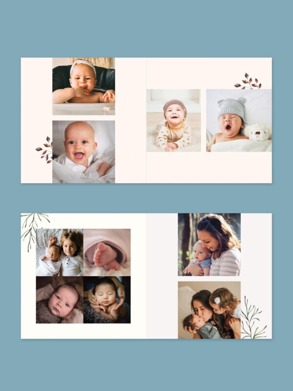A beautiful 12×12 baby album template design crafted to preserve your little one’s precious memories. Spacious layouts and gentle aesthetics perfect for capturing every milestone with love.