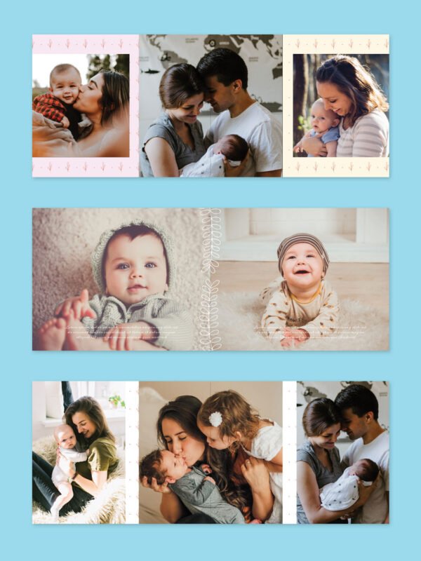 A sweet 8×10 baby photo album template designed to capture every precious smile and milestone. Perfectly sized for easy customization and lasting memories of your little one’s journey.