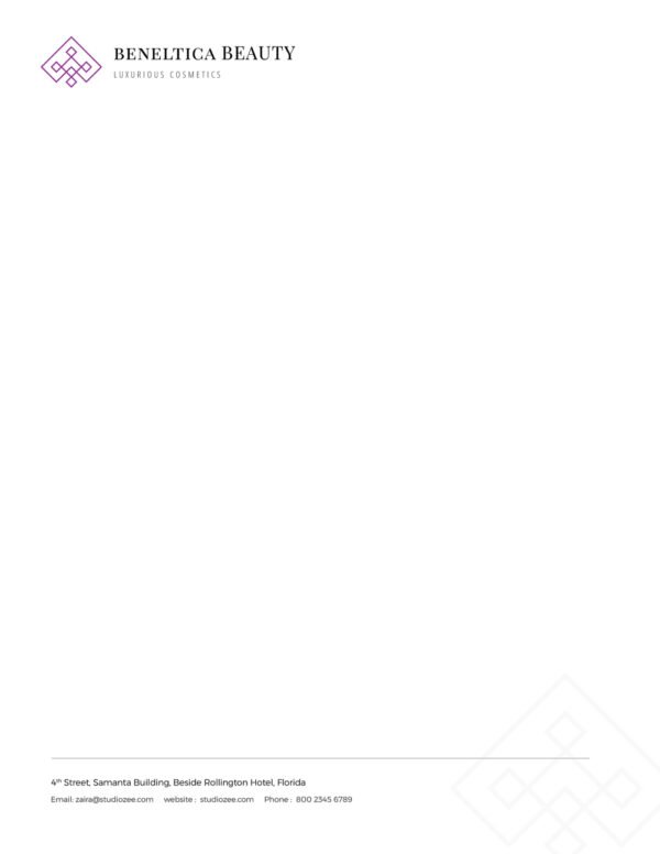 An elegant beauty care letterhead design with soft colors and graceful accents.