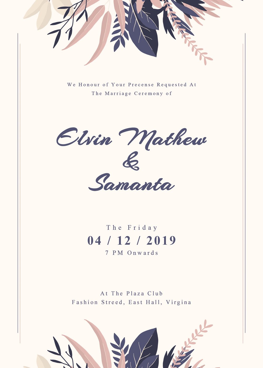 Romantic floral wedding invitation template with delicate flower designs and elegant typography. Perfect for garden weddings or spring ceremonies, with fully customizable text and layout.