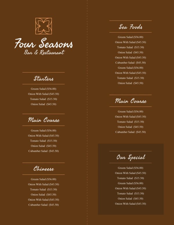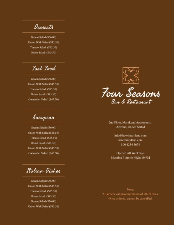 Deliciously designed Food Menu Template perfect for restaurants, cafés, and bistros.