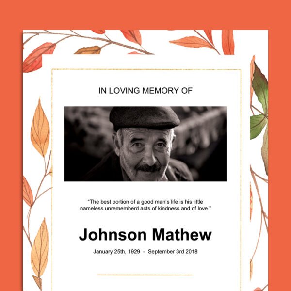A beautifully designed Funeral Program Template featuring space for service details, photos, and loving tributes. Perfect for honoring a loved one’s life and creating a meaningful keepsake for family and friends.