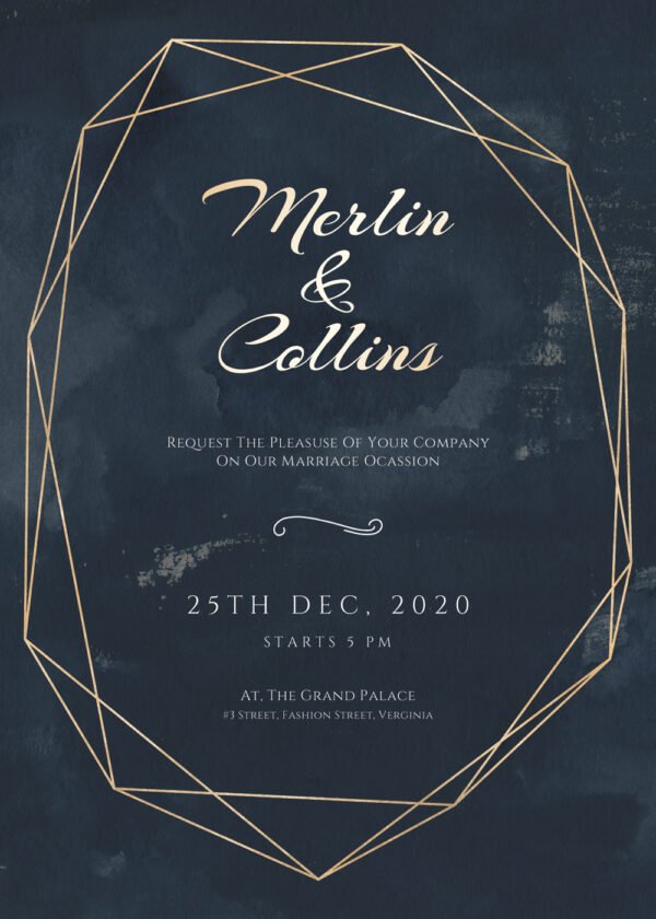 Luxurious Gold Wedding Invitation featuring elegant golden accents and a timeless design. Perfect for a sophisticated celebration, with customizable details to make your special day unforgettable.