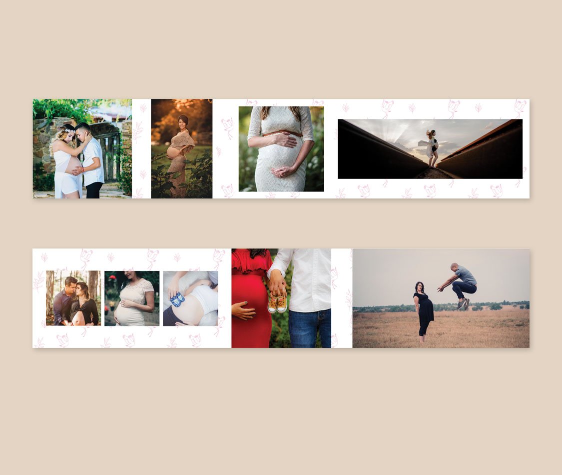 A unique 5×25 maternity accordion photo collage template that beautifully unfolds your pregnancy journey. Perfect for showcasing cherished moments in a creative, panoramic design.