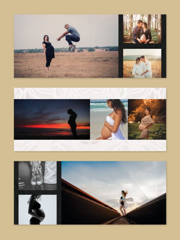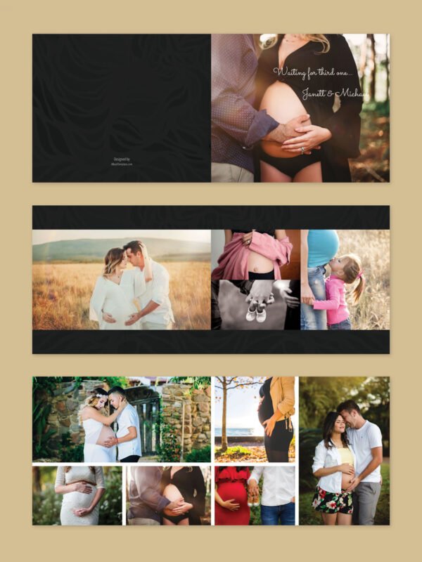 A beautiful 10×12 maternity pregnancy photo album template celebrating your journey to motherhood. Elegantly designed to showcase every precious moment with warmth and style.