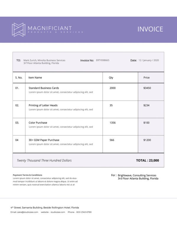 Ideal for freelancers, small businesses, or agencies needing a sleek billing format.