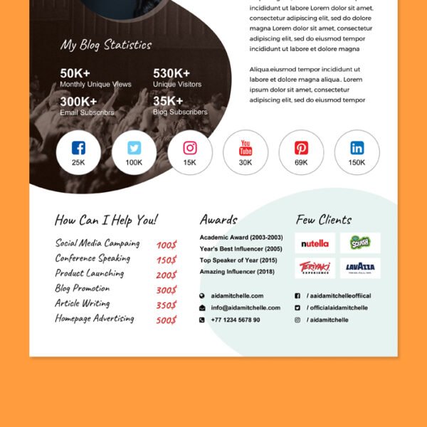 Tags: editable media kit, modern media kit, Modern Media Kit Template, simple media kit