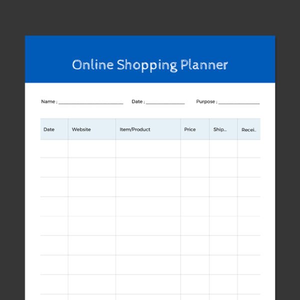 A handy Online Shopping Planner designed to track purchases, compare prices, and manage delivery schedules. Perfect for staying organized and making smarter online buying decisions.