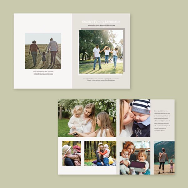 A versatile 8.5×11 Photo Album Template featuring clean layouts and customizable sections to highlight your favorite memories. Perfect for personal scrapbooks, travel journals, or family keepsakes.