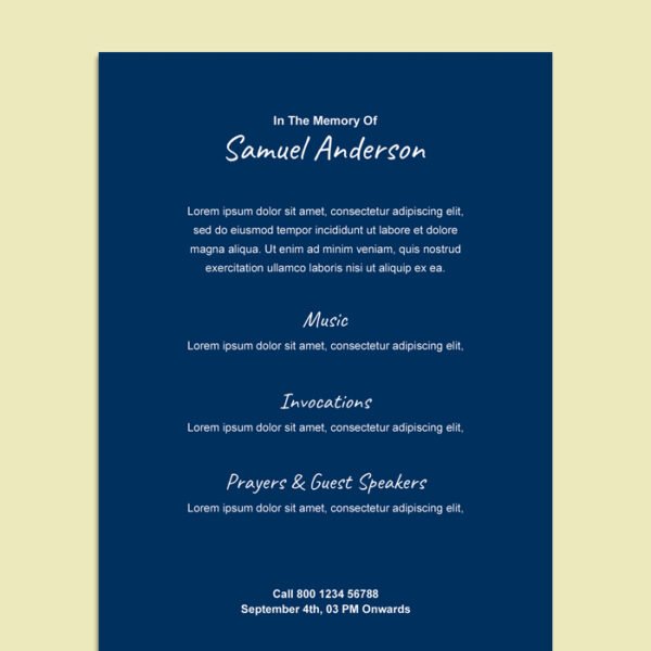 A heartfelt Photo Funeral Program template designed to beautifully commemorate a loved one with personal photos and meaningful details. Perfect for memorial services, offering a touching tribute and keepsake for family and friends.