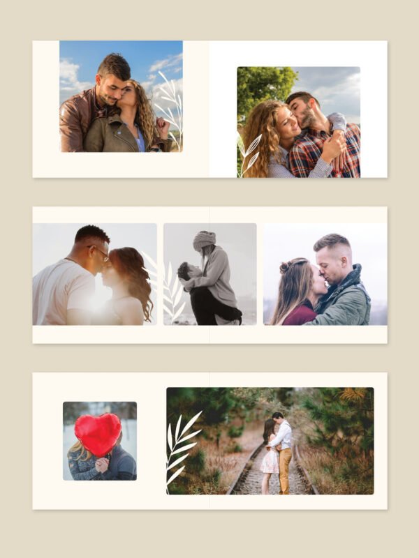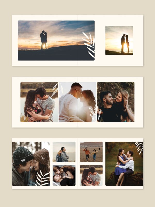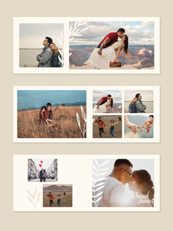 A stylish US Letter-sized pre-wedding album design capturing your love story with elegance. Perfect for showcasing romantic moments in a clean, easy-to-customize layout.
