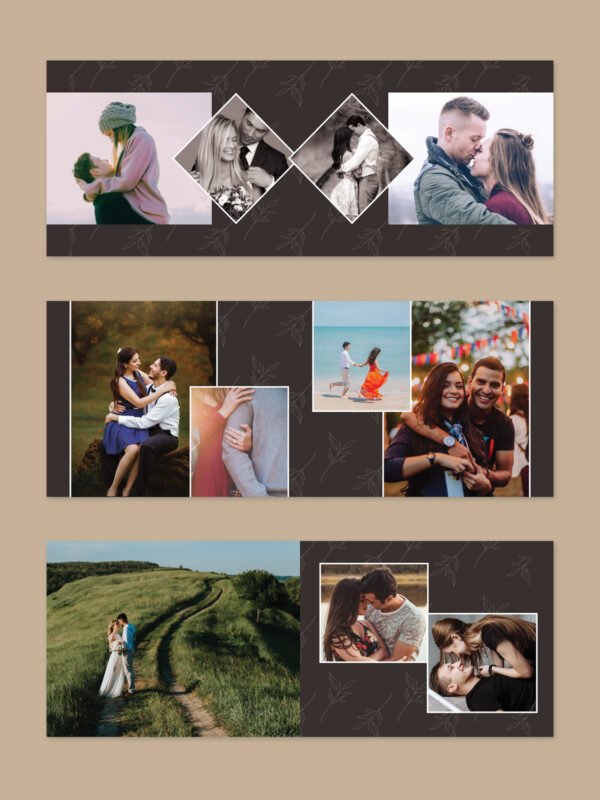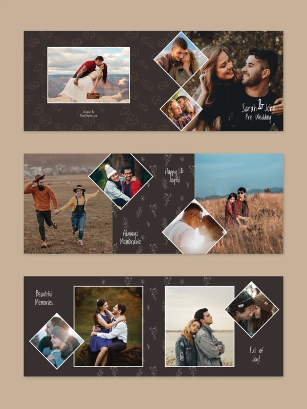 A stylish 8.5×11 pre-wedding photo album template designed to beautifully capture your love story before the big day. Perfect for showcasing romantic moments with elegant, easy-to-edit layouts.