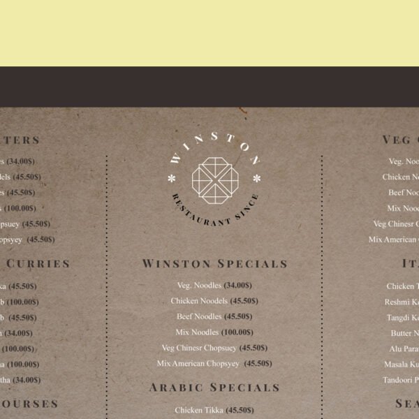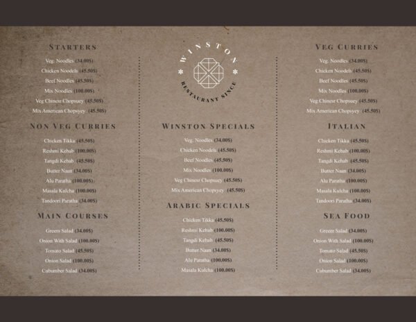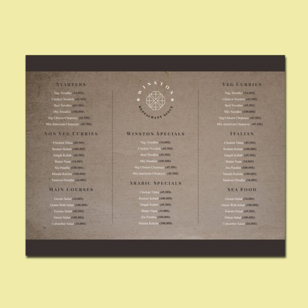 Professional and customizable restaurant menu template for any cuisine or dining style.