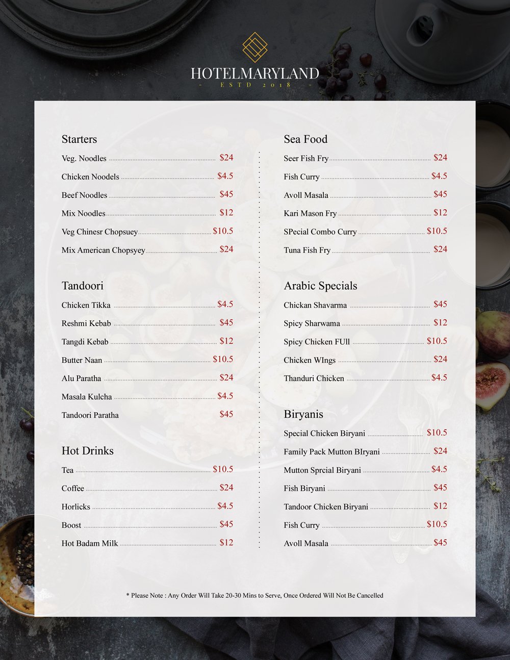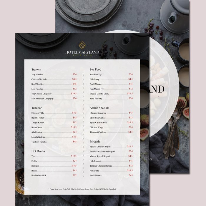 Minimalist menu card template with clean layout and easy-to-read typography.