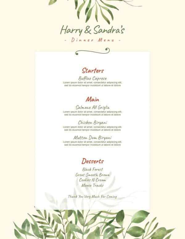 Simple Wedding Menu Template