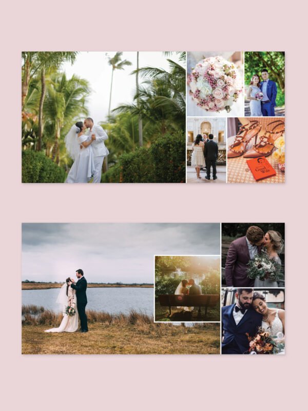 A stunning 12×12 wedding album template designed to beautifully showcase your unforgettable day. Spacious layouts and elegant design make preserving your memories effortless and timeless.