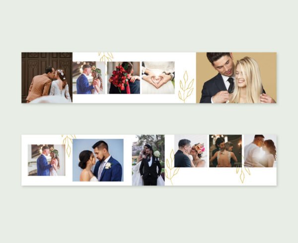 A creative 5×25 wedding photo accordion collage that unfolds your special day in a panoramic display. Perfect for showcasing a beautiful sequence of moments with a unique, flowing design.